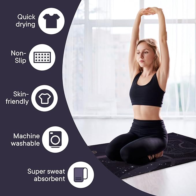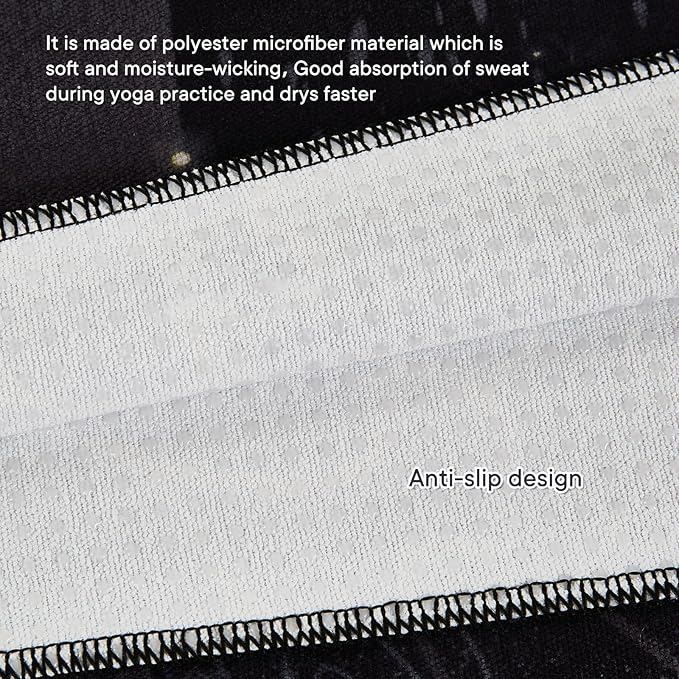 • PREMIUM MATERIAL: Made of high-quality, breathable, and quick-drying material, this yoga mat towel is perfect for hot yoga and sweaty sessions. The non-slip surface ensures a firm grip for your hands and feet, preventing injuries.