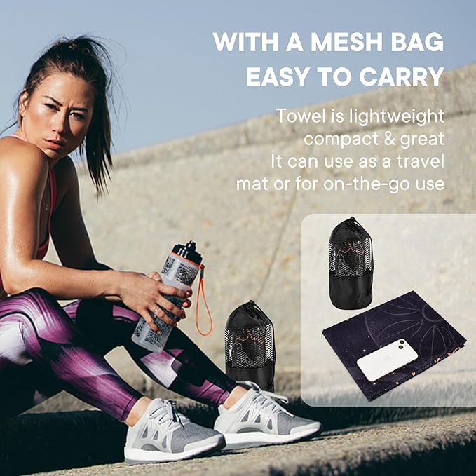 • HYGIENIC AND HEALTHY: By using this yoga towel on top of the studio mat, you can put a hygienic layer between you and the mat. This will increase your confidence and remove your worries about whose sweat and germs you'll be practicing on. It's lightweight, easy to carry, and fits nicely in your bag.