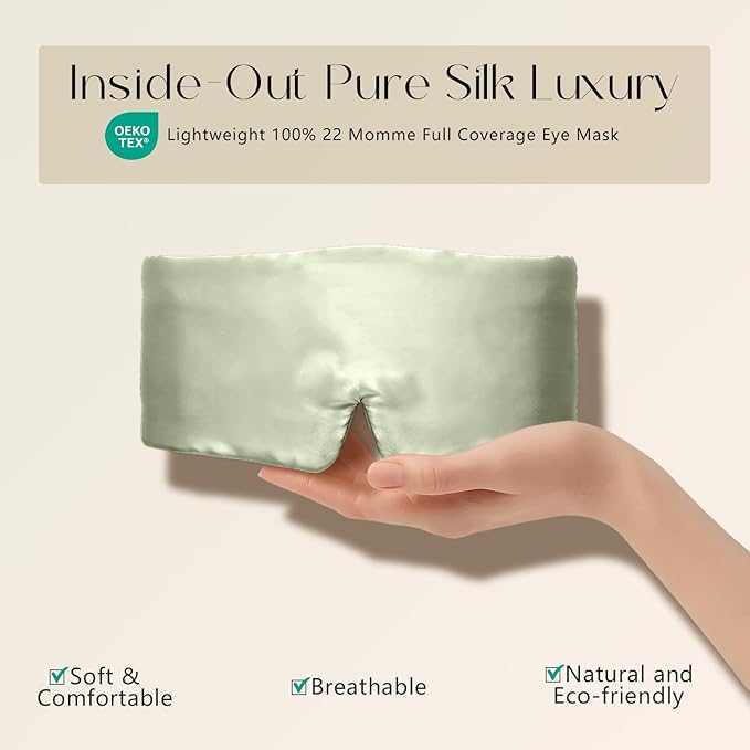 - ✅100% 22 Momme Grade 6A Luxury Construction: Crafted entirely from the highest-grade mulberry silk - including a silk-filled interior - this premium sleep mask delivers superior thickness, gloss, and durability. The full silk encasement ensures unmatched breathability, cloud-like comfort.