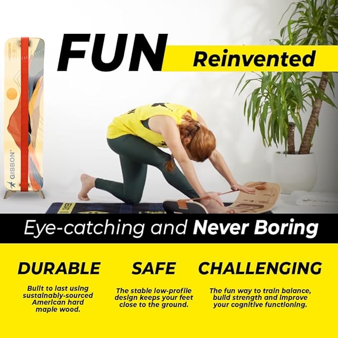 GIBBON SlackBoard - GiBoard Balance Board Kids & Adults - Slackline Balance Trainer - Slack Board Core Workout Equipment Home Gym Training - Standing Desk Exercise - Yoga, Agility, Pilates & More