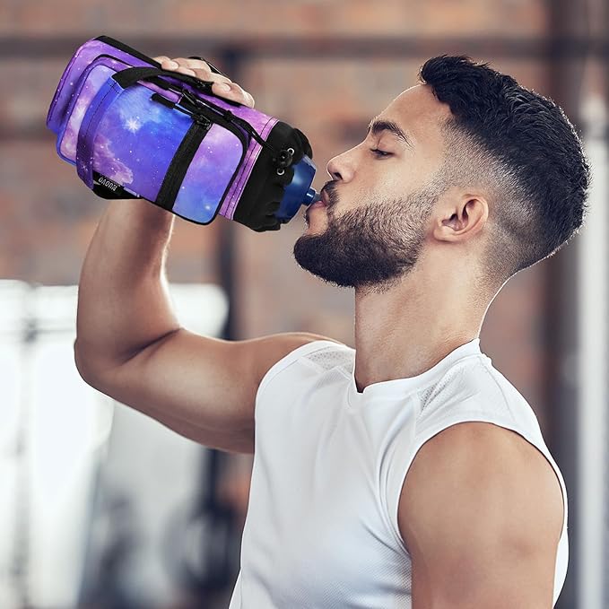 • 2 Ways Carry: You can carry it by hand or slung by shoulder. When you are exercising outdoors, it is sometimes difficult to free up extra hands to hold the water bottle, then you can use the padded shoulder strap to slung it over your shoulder.