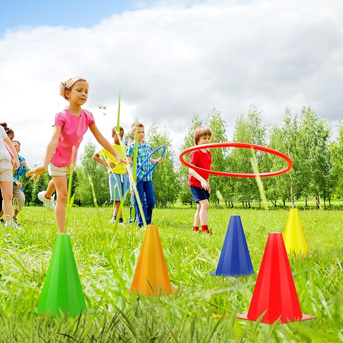 • Multi Purpose: these caution cones for sports are suitable for various indoor and outdoor activities, such as soccer, football, basketball, baseball, themed parties, festive events, driving, motorcycle training, dog training, obstacle training, parking, horse training, racetrack marking, etc.; They work well with many flat surfaces, like grass, walkway, gym floor, concrete, cement, artificial turf and more