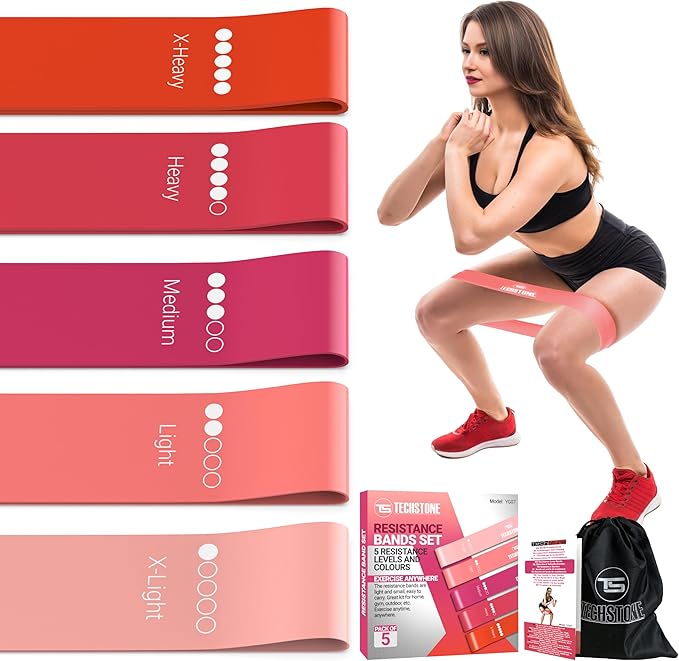 TechStone Resistance Bands Set for Men and Women, Pack of 5 Different Levels Elastic Band for Home Gym Long Exercise Workout – Great Fitness Equipment for Training, Yoga – Free Carrying Bag