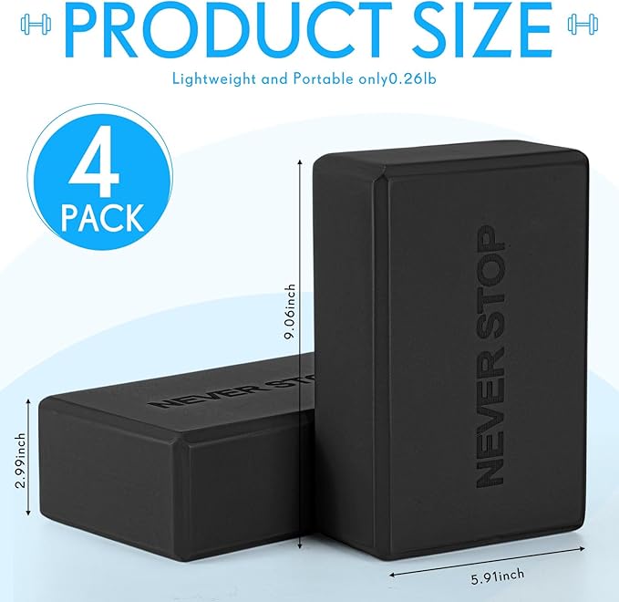 - Yoga Practice Blocks: whether you're a beginner or an advanced practitioner, this set of 4 yoga blocks is crucial for elevating your practice; These exercise blocks enable you to increase the difficulty and stretching strength in various parts of your body, ensuring more precise and easier posture adjustments