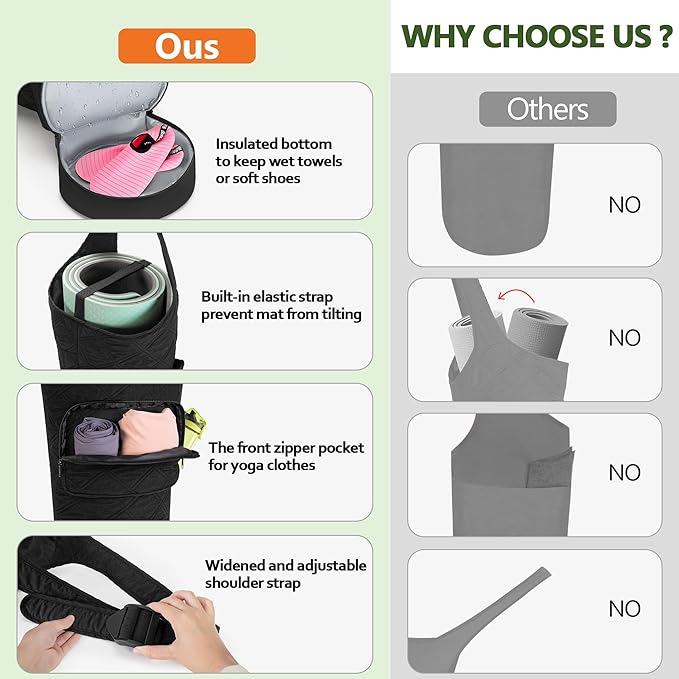 Yoga Mat Bag with Wet Pocket, Bottle Pocket and Mat Secure Straps, Yoga Mat Carrier Fits Most Size Mats (Bag Only), Black