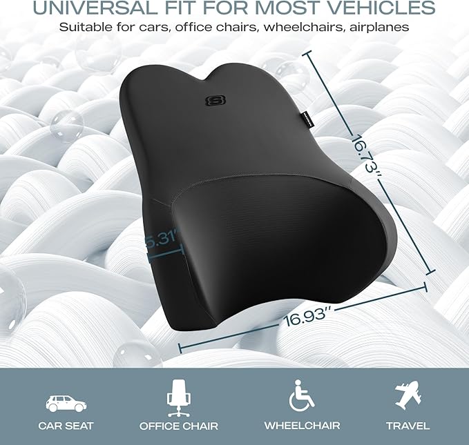 - Skechers Air-Cooled & Memory Foam Lumbar Pillow,Lumbar Support Pillow For Office,Chair Lower Back Pain Relief Lumbar Pillow,Ergonomic Design Back Support Pillow For Office Chair,Car,Home, Travel,Black