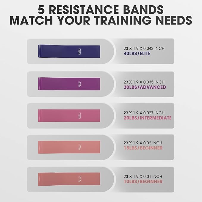 - 5-Level Resistance Bands Set:Features 10/15/20/30/40lbs resistance options to suit all fitness levels, from beginners to advanced athletes.Whether you're building strength, toning, or recovering, there's a band to meet your workout needs