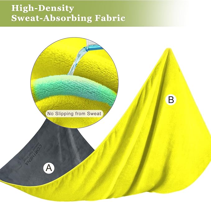 Hot Yoga Towel Set, 600GSM Yoga Mat Towel Extra Thick Dual-Color Microfiber, Soft Non-Slip Sweat Absorbent, 72" x 27.5" with Matching Hand Towel for Hot Yoga, Pilates, Fitness, Grey/Yellow