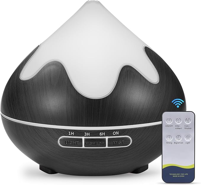 - ✨SET THE MOOD WITH JUST A TAP: Command every feature from within 16.5ft: Switch mist/light modes, set 60/120/180min timers, or activate advanced intermittent mist for subtle fragrance bursts. Adjust everything from your cozy nest with the handy remote, your personalized wellness experience is just a button press away.