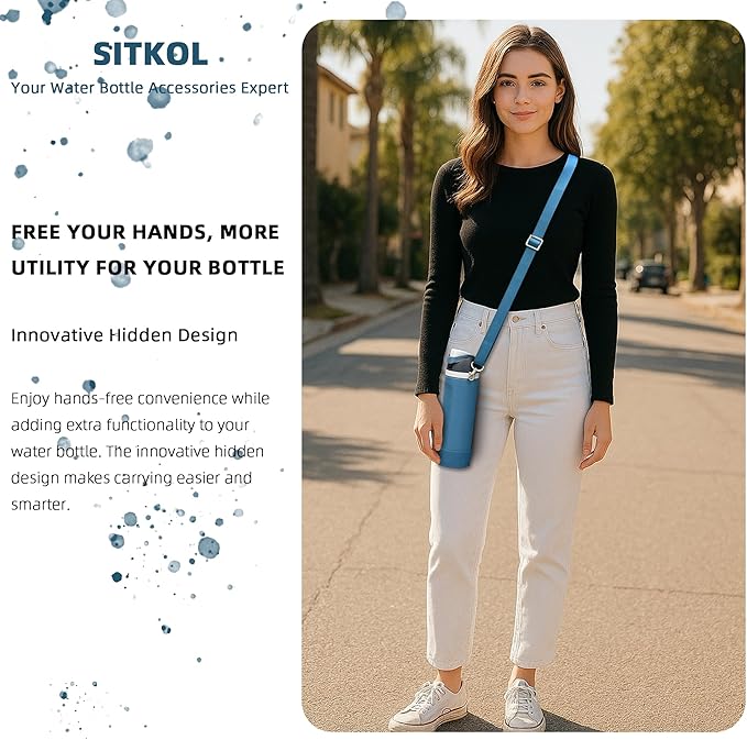- Hidden Design: The connector is discreetly hidden between the lid and the bottle body, with a stainless steel material that securely fastens the shoulder strap to the water bottle. Whether you're running or walking, you won't have to worry about the bottle coming loose