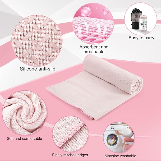 - LIGHTWEIGHT AND PORTABLE: The hot yoga towel non slip measures 72''X24.8'' (183*63cm) , and comes with a durable storage mesh bag for easy storage and carrying. This yoga sweat towel is not only suitable for yoga mats and gyms, but also can be used in outdoor picnics or beach trips; one non slip yoga towel is multi-purpose to meet the diverse needs of home and outdoor