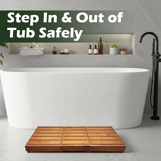 - 【Slip-Resistant & Weather-Resistant Build】The slatted wooden surface helps improve traction and allows water to drain quickly, keeping the platform safer to use in wet conditions. Perfect for both indoor entryways and outdoor porches, decks, and garages.