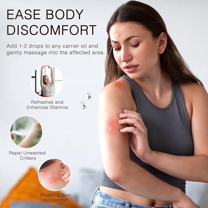 • Relaxation & Refreshing: The unique aroma of eucalyptus body massage oil stimulates the brain, enhances focus and concentration, calms the mind, and reduces anxiety, making it suitable for work or study. Simply add 6-8 drops of essential oil to a diffuser, aromatherapy stove, or humidifier to create a vibrant and fresh aromatherapy atmosphere in your workspace.