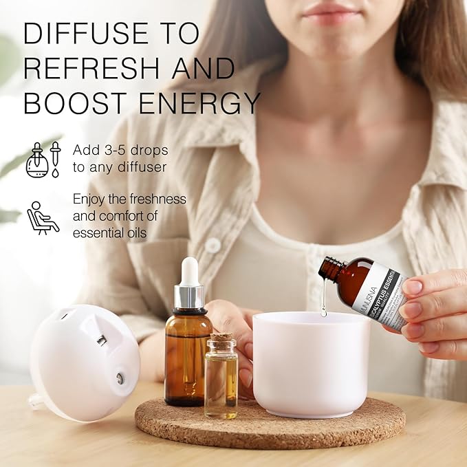 • Improves Breathing: The leaves of this eucalyptus tree are used all over the world for eucalyptus essential oil for their beneficial properties and health benefits. MUNUSNA eucalyptus oil possesses potent soothing, decongestant properties, benefits respiration, skin vitality, and energy level, helps alleviate breathing discomfort.