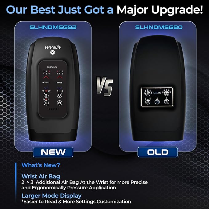 SereneLife Hand Massager with Heat and Compression, Cordless Comfort Auto-Roller Kneading Massage, Large LCD, 3 Airbags, 6 Modes, 6 Intensities, 3 Heat Settings for Relaxation