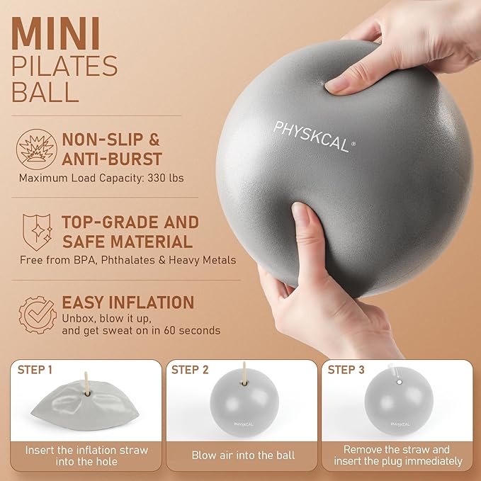 - Safe & Non-Slip Mini Pilates Ball- Made from top-grade BPA-free material with 330 lbs load capacity, this anti-burst Pilates ball provides secure inflation in 60 seconds and ensures stability during core exercises and physical therapy routines.