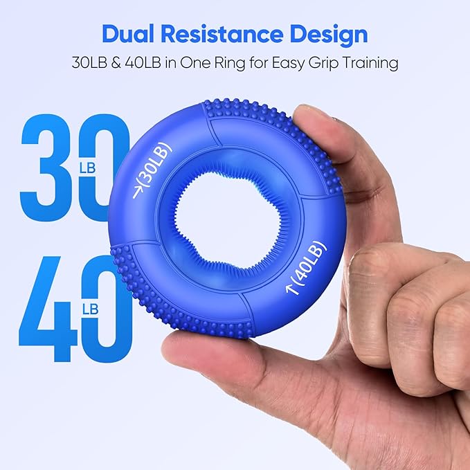 - ๐๐๐ฎ๐น ๐ฅ๐ฒ๐๐ถ๐๐๐ฎ๐ป๐ฐ๐ฒ ๐๐ฟ๐ถ๐ฝ ๐ฅ๐ถ๐ป๐ด: Two resistance levels (30lb & 40lb) in one ring let you easily adjust training intensity for gentle recovery or gradual strength improvement. Simple, efficient, and perfect for steady hand rehabilitation