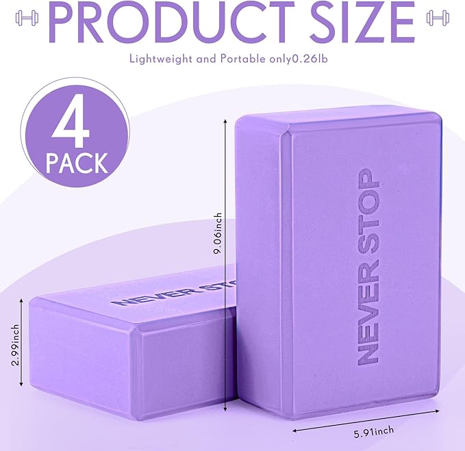 - Yoga Practice Blocks: whether you're a beginner or an advanced practitioner, this set of 4 yoga blocks is crucial for elevating your practice; These exercise blocks enable you to increase the difficulty and stretching strength in various parts of your body, ensuring more precise and easier posture adjustments
