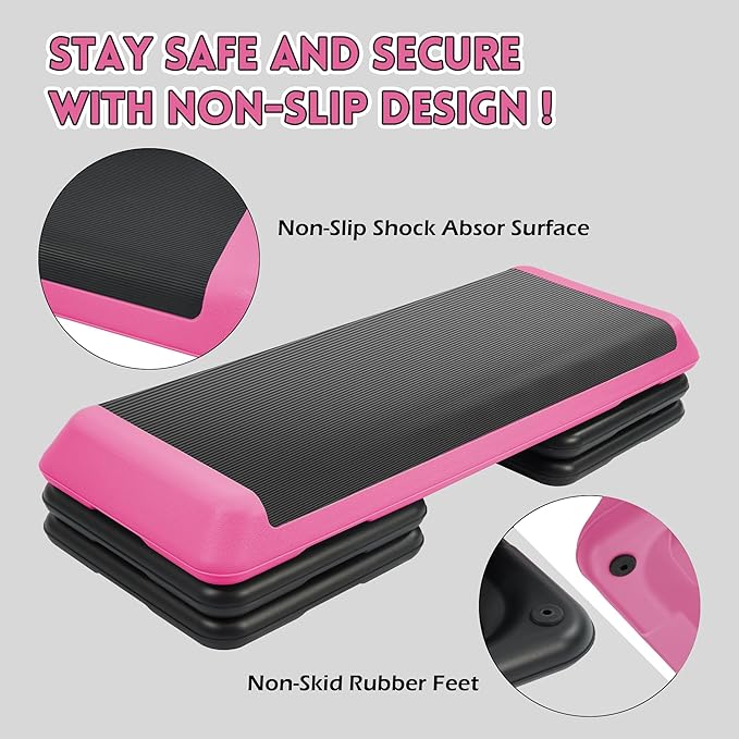 - Non-Slip & Shock-Absorbing: Grooved, nonslip top that absorbs shock, preventing slips and allowing you to focus on safe, effective movements during every workout. Each riser has four nonskid feet, preventing slipping or floor damage, whether used on carpet or hardwood, keeping your workout stable and safe.