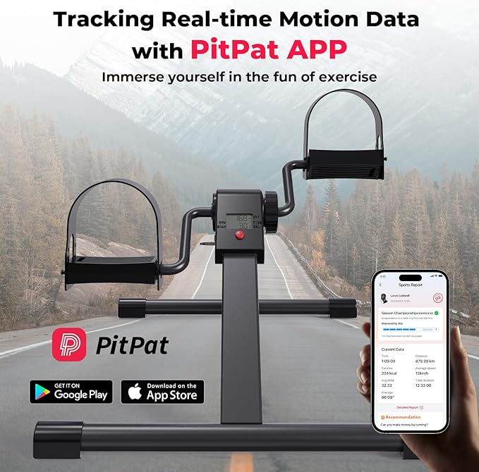 - 【Connect APP to Begin Fun Workout!】Maximize your mini pedal bike! Pair it with the exclusive PitPat app for a tailored fitness journey. Get custom plans, track your progress in real-time, and achieve your goals with powerful motivation