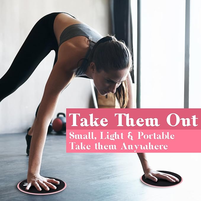 - ON-THE-GO: 2 pack light pink fitness sliders measures 6.9" in diameter and 2.89oz in weight, making them easy to carry. Even on the road, you can exercise anywhere.