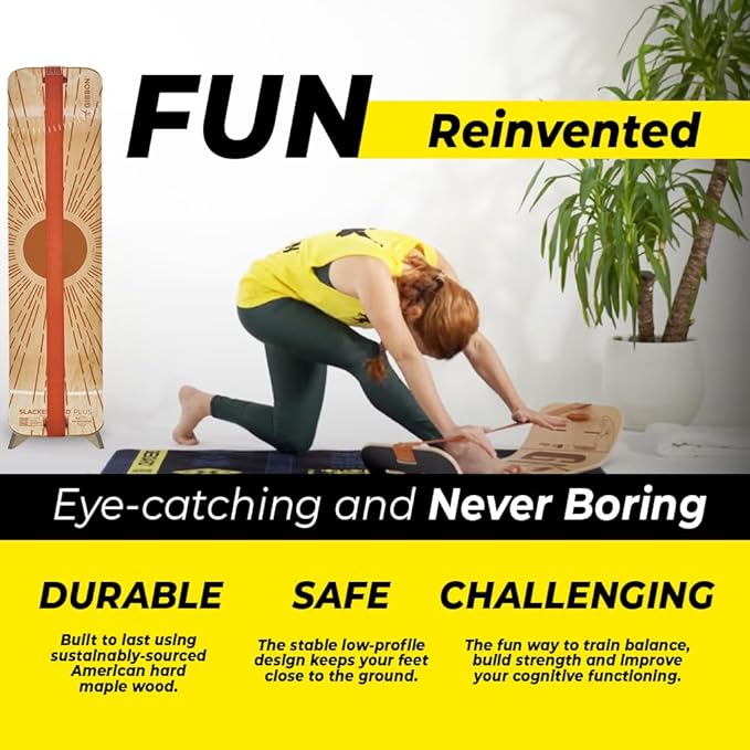 GIBBON SlackBoard - GiBoard Balance Board Kids & Adults - Slackline Balance Trainer - Slack Board Core Workout Equipment Home Gym Training - Standing Desk Exercise - Yoga, Agility, Pilates & More