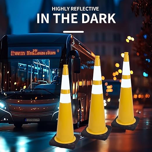 - 6 INCH & 4 INCH REFLECTIVE COLLARS – Each Construction Cone features a bright 6 & 4 inch reflective bands that ensures 360° visibility in daylight and at night, even in rain, fog, or low-light conditions